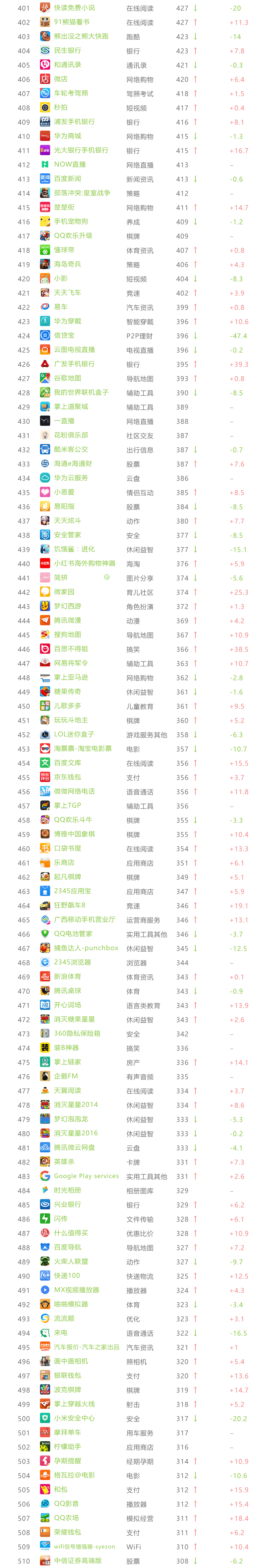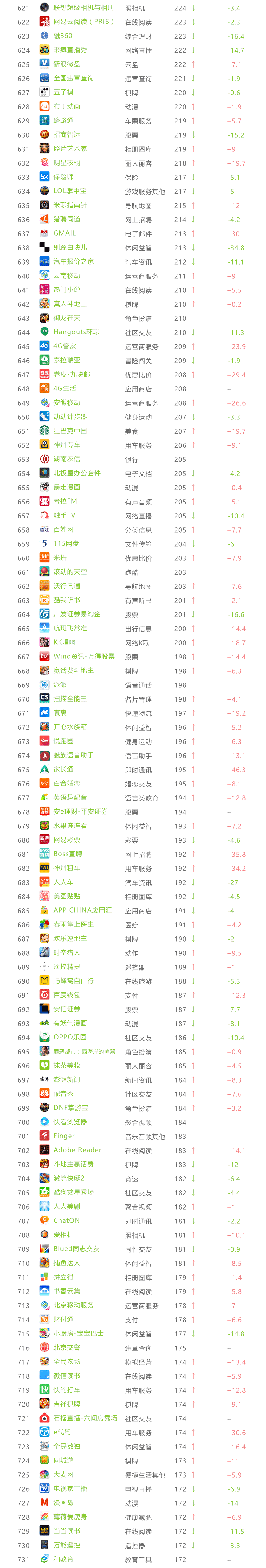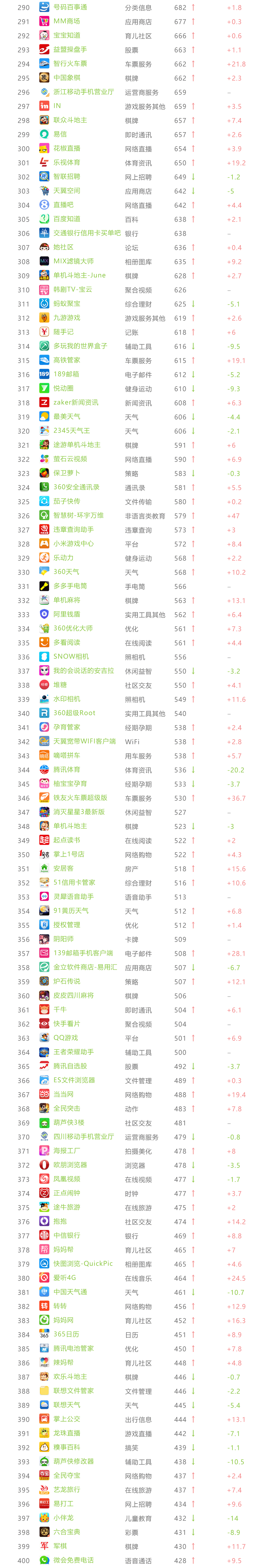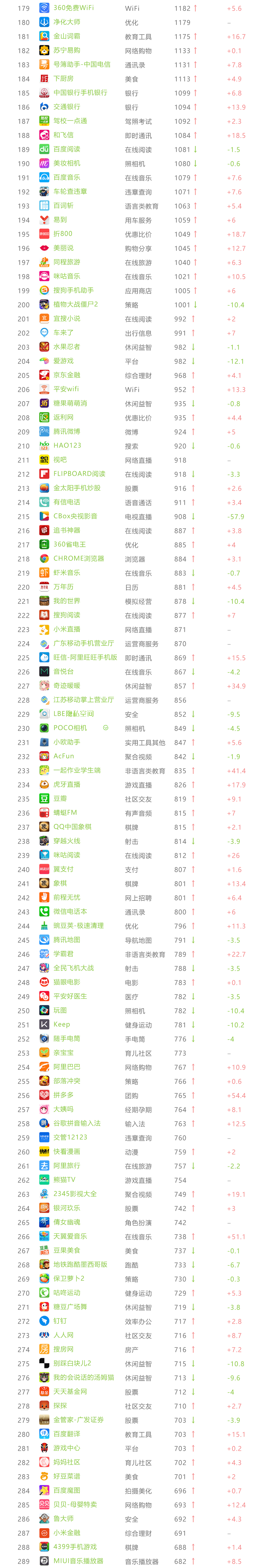 艾瑞APP指数 TOP 1000榜单