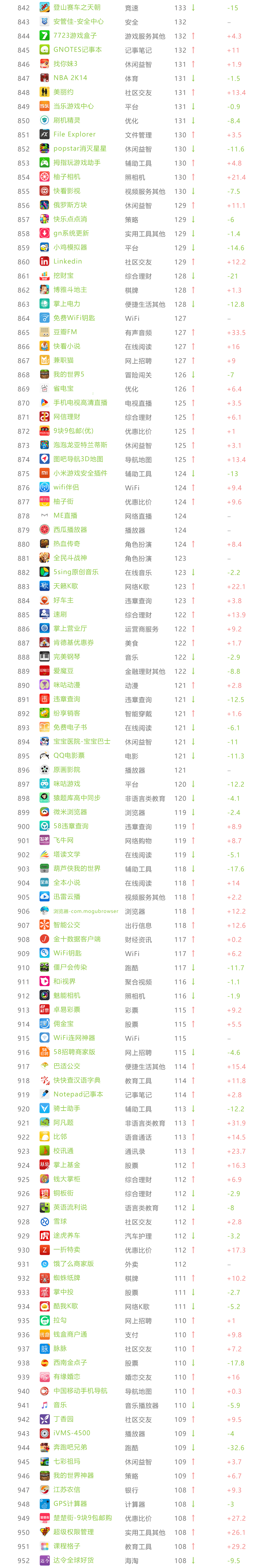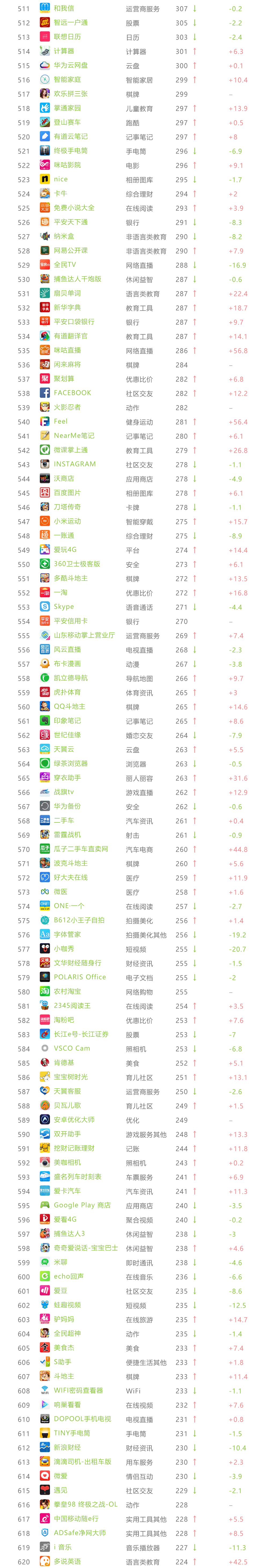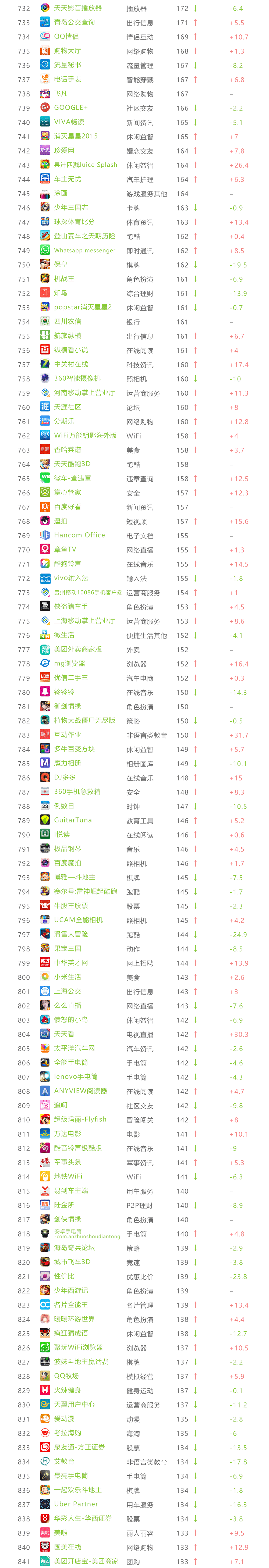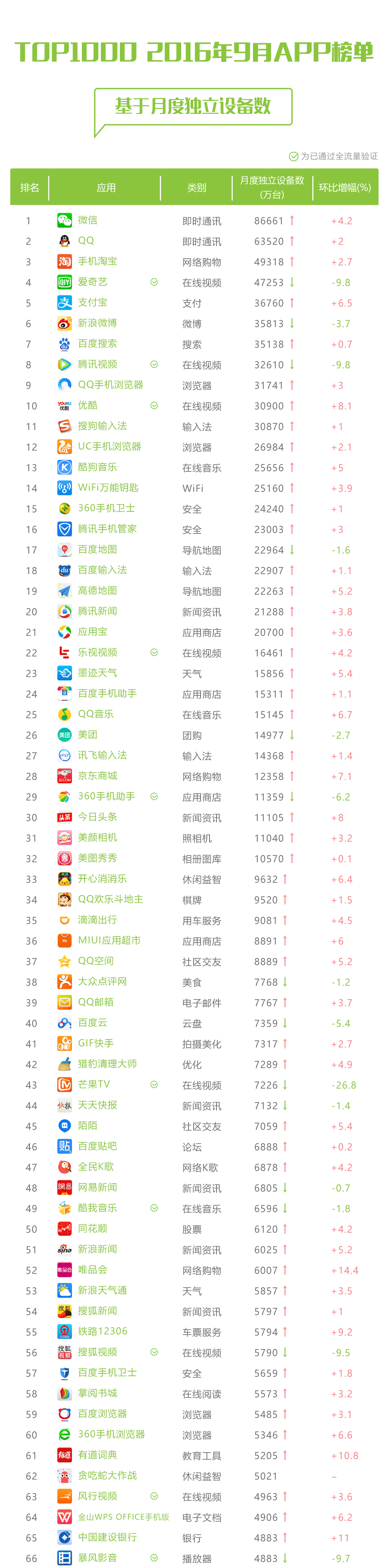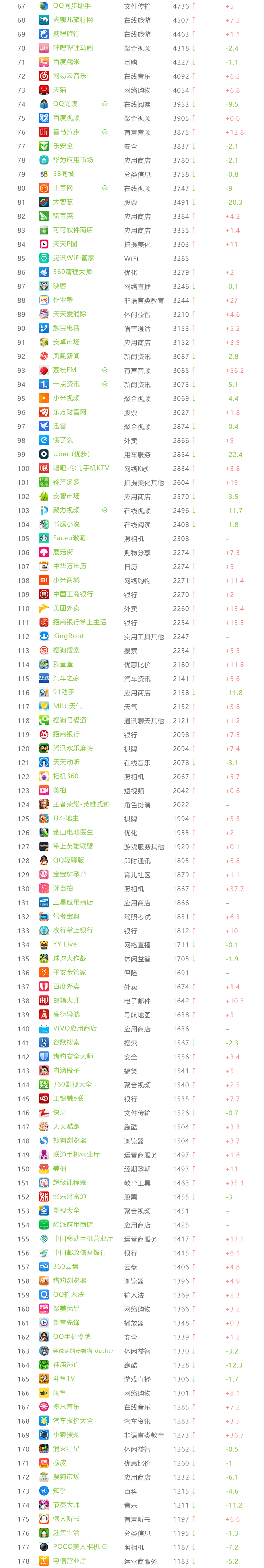 艾瑞APP指数 TOP 1000榜单