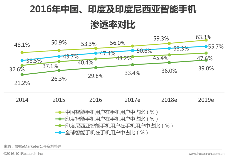 新兴互联网地区分析:印度及东南亚地区智能机渗透速度较快,带来人口红利