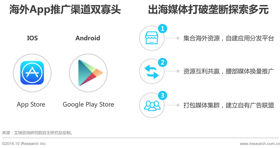 未来移动出海营销应通过推动移动分发渠道的发展,打破AppStore及GooglePlayStore的垄断地位,降低应用推广的限制,从而获取更为多元的媒体资源。