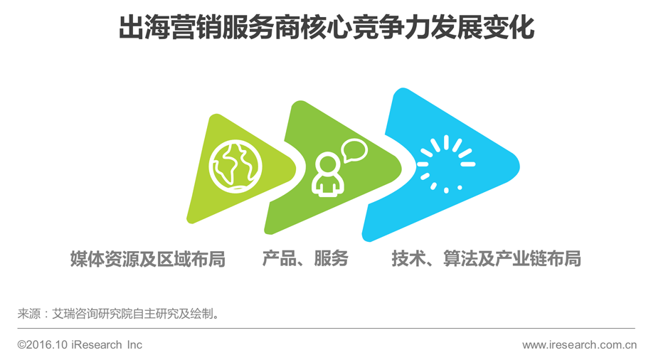 艾瑞分析认为,从长期来看,伴随广告主需求的转变升级、海外人口红利的消失,市场环境和竞争环境的变化将对营销服务商的专业服务能力要求大大提高,导致营销服务商的核心竞争力向技术、算法及产业链布局倾斜。