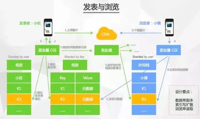 简单讲,朋友圈信息的处理可以分解为发表与浏览两个主要环节,而它们都遵循着一个时间线(timeline)的逻辑。所谓的刷朋友圈,实际上就是刷时间线,也就是一个用户所有朋友的发布内容。