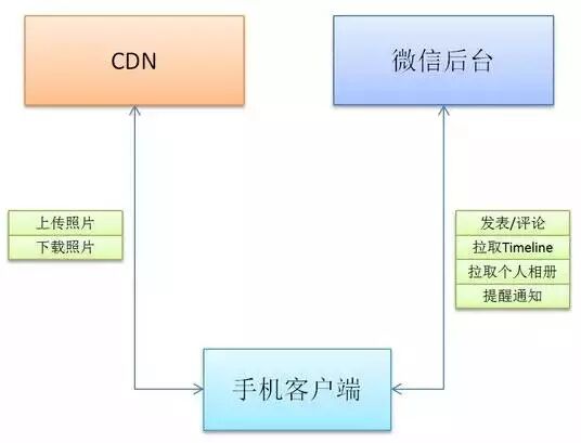 之后,小佐的最新发布会批量插入到他所有好友的时间线里。当他的好友小倩开始刷朋(shi)友(jian)圈(xian)的时候,小倩的微信客户端会把小佐发布的图片拉回本地,显示出来。